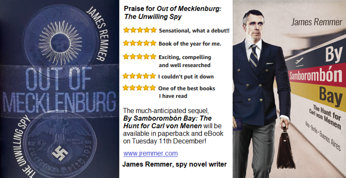 James Remmer’s debut novel Out of Mecklenburg: The Unwilling Spy, a selection of five-star reviews, and the sequel By Samborombon Bay: The Hunt for Carl von Menen